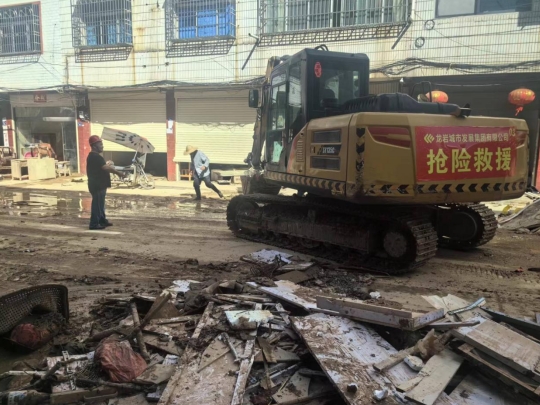 6月20日,市政集團搶險救災突擊隊到達武平巖前鎮。現場一片狼藉,不僅整個片區斷水斷電,通廣街、環城路等主要街道被淤泥及各類建筑垃圾覆蓋,救援人員的食宿也沒辦法得到保證。
