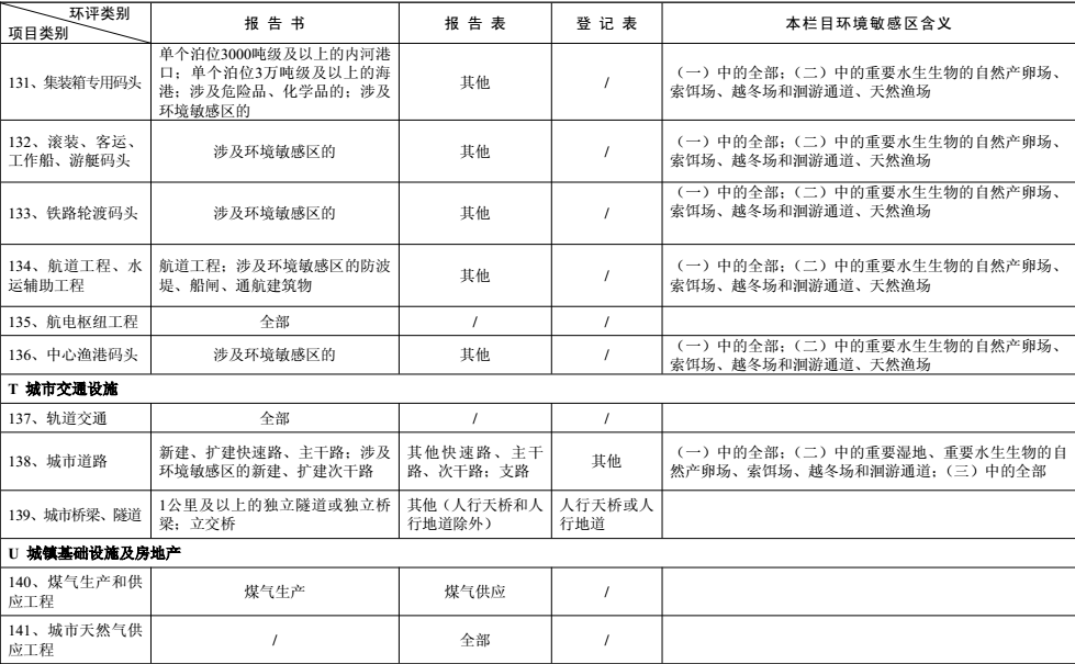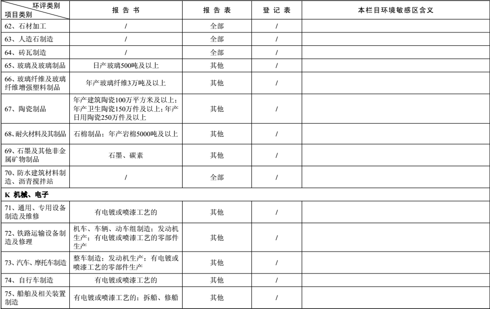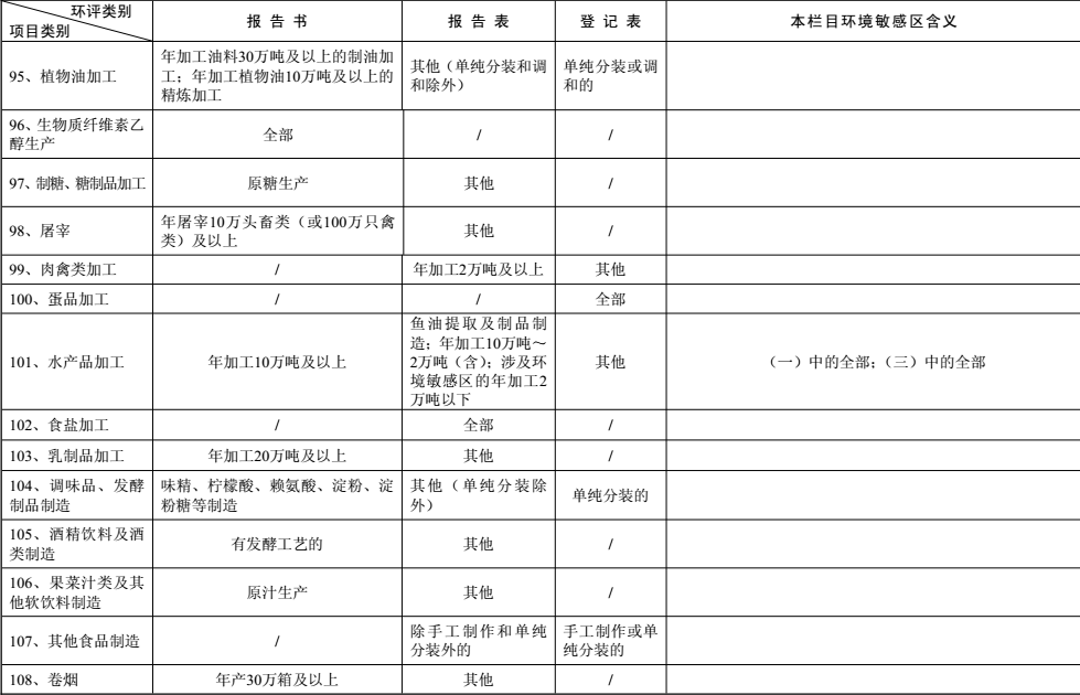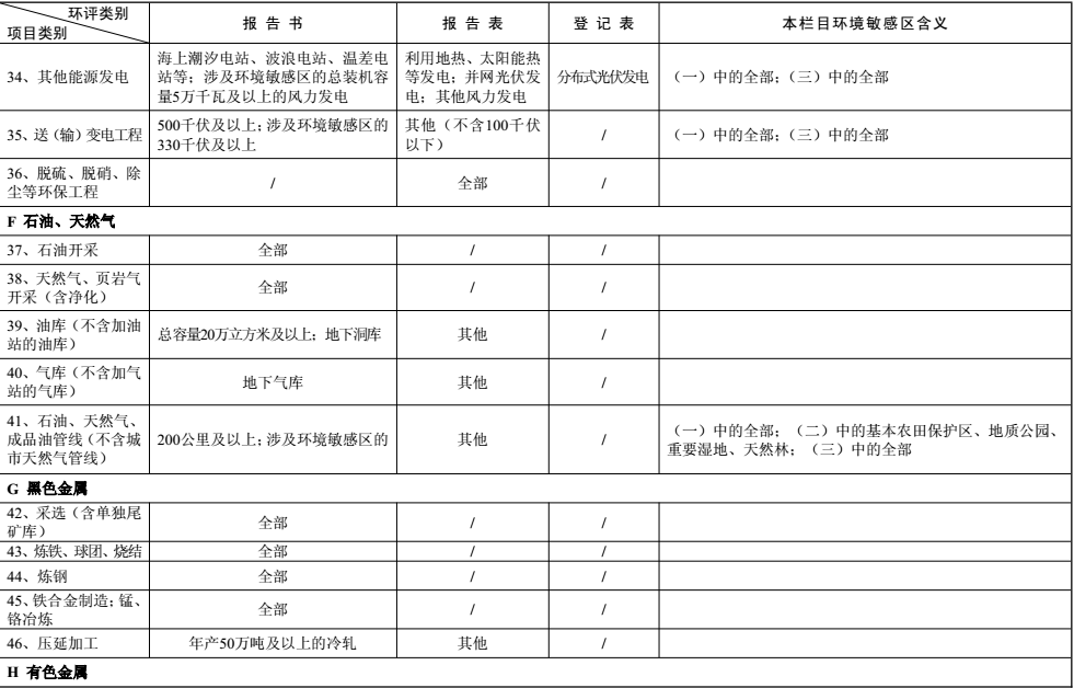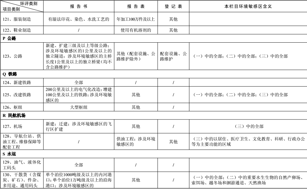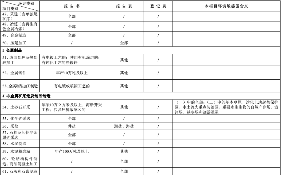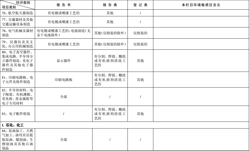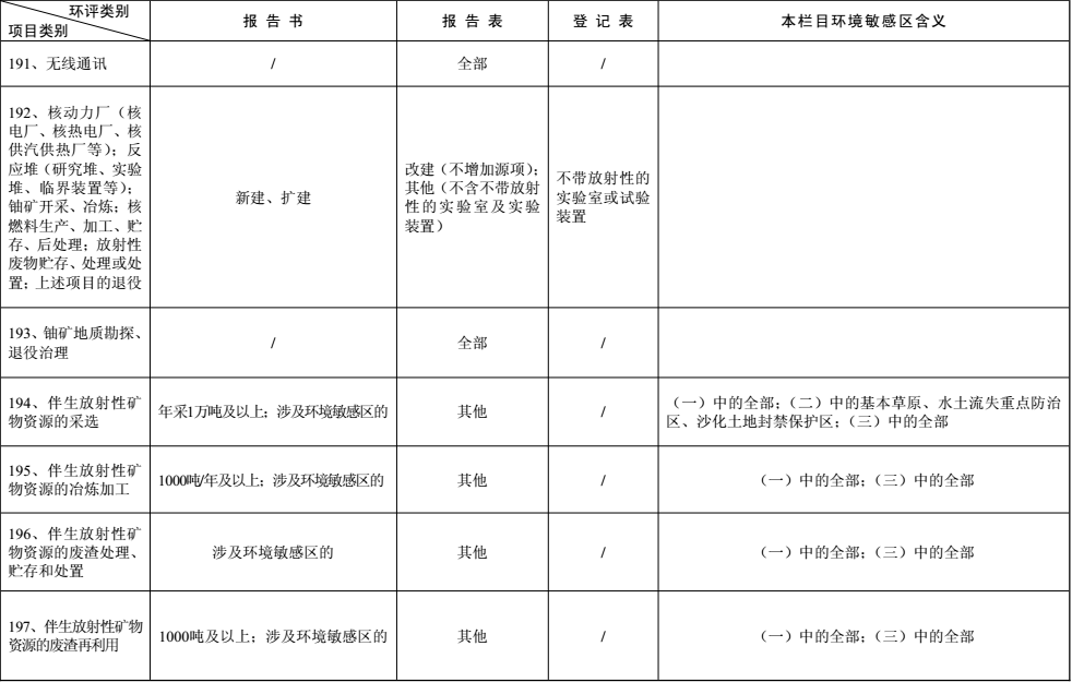 建設項目環境影響評價分類管理名錄