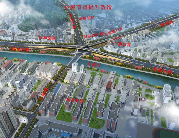 小溪節點改造工程主要包括上跨“Y”字形高架橋、下穿“Y”字形下穿通道,并對現有溪南南路等道路進行拓寬和改建溪南垃圾轉運站,項目總投資約2.66億元,其中工程建安費約1.83億元,征收及其他費用約0.83億元,工程建設工期約15個月。其中: