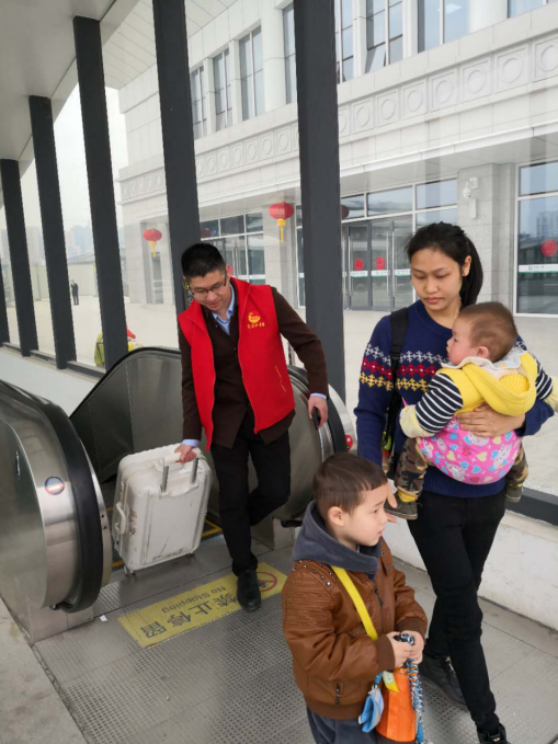在火車站服務(wù)最需要幫助的有三種人:一種是殘疾人,一種是老年人,另外一種就是一手抱著小孩一手提著行李的旅客因新建火車站剛剛啟用,“請問進(jìn)站口在哪兒?當(dāng)一位拿著大包小包還帶著孩子的旅客問到。“在這邊,我來幫你。”志愿者一邊指著路一邊接過旅客手中的包,一路將她送至進(jìn)站口