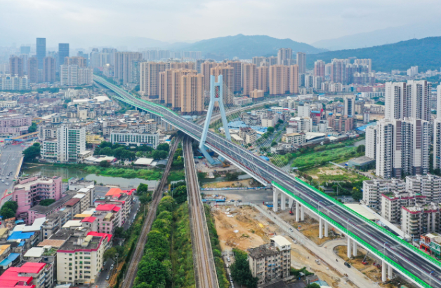 龍巖大道高架橋2013年9月開工建設(shè),2020年10月建成通車。該項(xiàng)目地面道路長(zhǎng)3395米,寬78米;高架橋部分長(zhǎng)2329米,標(biāo)準(zhǔn)段寬26米,含一座(190+150)米的獨(dú)塔雙索面斜拉橋,斜拉橋?qū)?4.2米;葫蘆溪分洪工程長(zhǎng)667米,標(biāo)準(zhǔn)段結(jié)構(gòu)7.5×3.9米,總投資24億元。